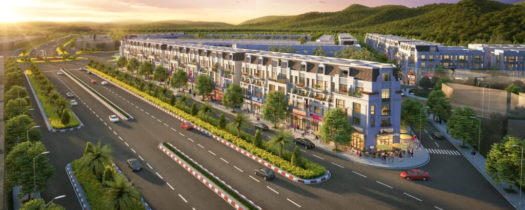 Dãy shophouse mặt tiền đường bao biển 6 làn xe Hạ Long – Cẩm Phả.